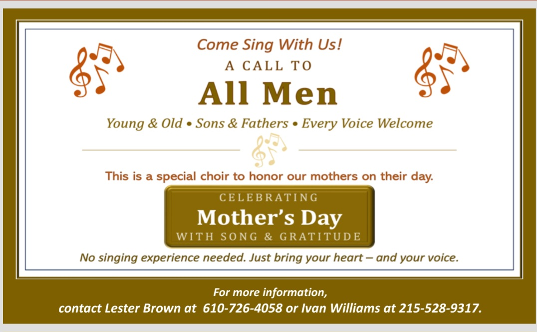 ALL MEN YOUNG & OLD, SONS & FATHERS, EVERY VOICE WELCOME!