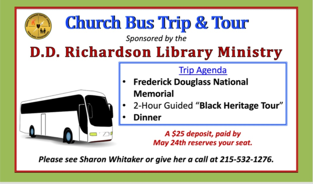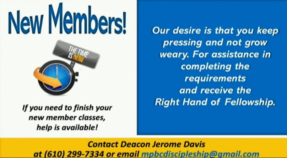 For more information, contact Deacon Jerome or Deaconess Rochelle Davis