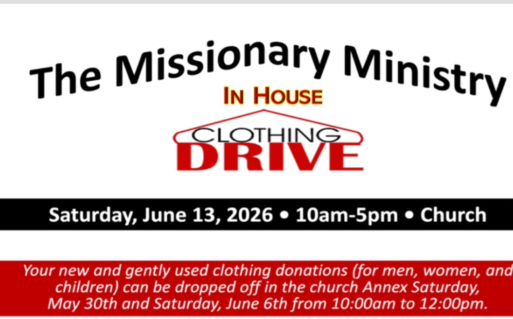 Your new and gently used clothing donations (men, women & children) can be dropped off in the church Annex on Saturday, May 30th and Saturday, June 6th from 10am to 12noon.