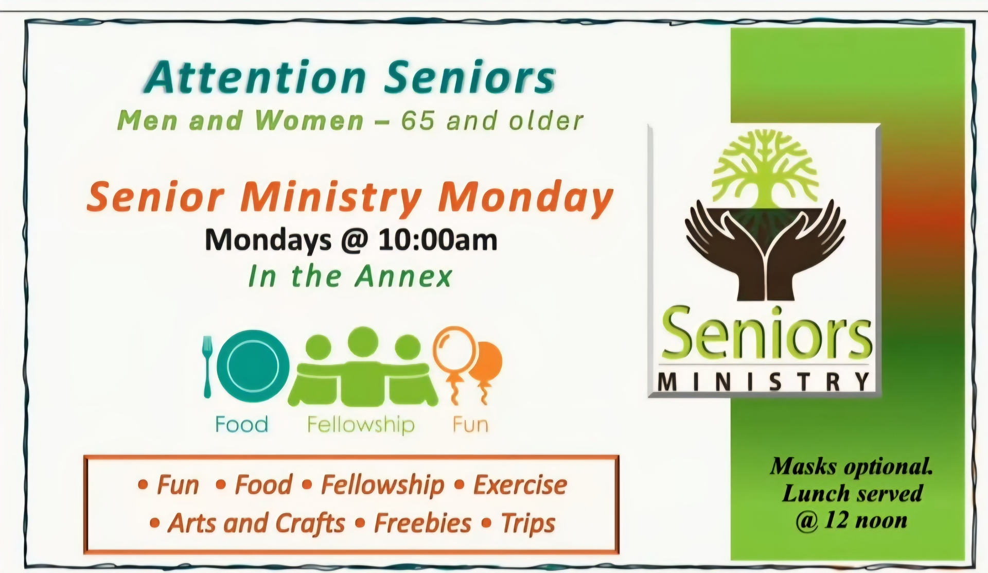 Fun, Food, Fellowship, Exercise, Arts & Crafts, Freebies, Trips